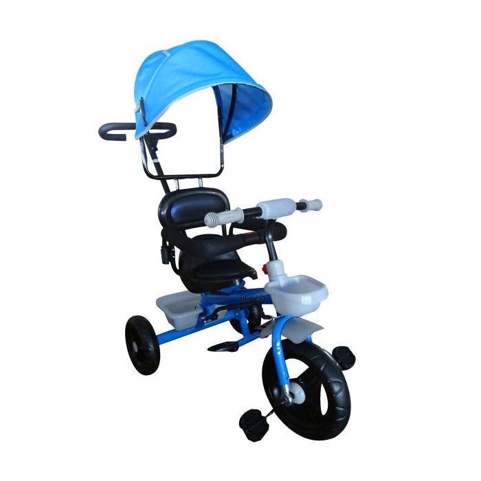 Triciclo Infantil de Ferro Com Capota Solar 2 Anos Até 25 Kg Barra Guia Sininho Brinqway - Azul