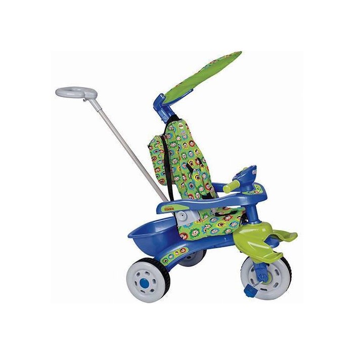 Tenha segurança, conforto e praticidade ao passear com seu bebê com o Triciclo Magic Toys Super Trike da Magic Toys! Produzido com materiais de excelente qualidade, é ideal para crianças a partir de 9 meses e até 20kg. O triciclo possui sistema inteligente na roda dianteira, trava na função pedalar e destrava na função passeio, banco regulável em 3 fases, aro de proteção removivel, painel eletrÔnico com luzes, música e frases do Cebolinha. Além disso possui capota móvel removivel e proteção contra os raios UV. é o brinquedo ideal para divertir e treinar os primeiros passos do seu bebê com praticidade e segurança, além de estimular a coordenação motora. Imagens Meramente Ilustrativas. Todas as Informações divulgadas são de responsabilidade do Fabricante/Fornecedor. Não nos responsabilizamos pela montagem/instalação dos produtos. Não deixe de checar seu bebê periodicamente. Não deixe o bebê sozinho. Código 124274513 Código de barras 7896839933229 Marca Magic Toys Composição/Material Plástico de Alta Resistência Idade recomendada A partir de 9 meses Peso máximo recomendado (kg) até 20kg Cor Azul;Verde Posições 3 posições Assento Estofado Rodizios Não Bandeja Não Balanço Não Alça de apoio Sim Altura regulável Sim Ajuste de velocidade Não Efeitos musicais Sim Rodas PVC Dimensões aproximadas do produto (cm) - AxLxP 105,3X53,2X109,2cm Peso liq. aproximado do produto (kg) 8,0kg Conteúdo da Embalagem 1 Triciclo; Haste; Caçamba; Bolsa Portátil e Suporte para os pés. Garantia do Fornecedor 3 meses Modelo Triciclo Trike Referência do Modelo 3322 Fornecedor Magic Toys do Brasil