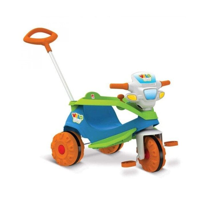 Triciclo Velobaby Passeio e Pedal Azul Brinquedos Bandeirante
