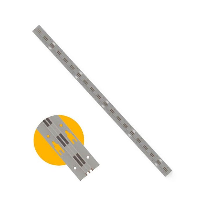 O trilho cremalheira para uso com MDF, dando um melhor acabamento na sua loja ou casa, produto resistente com design inovador de fácil aplicação e praticidade na montagem, produto reforçado em alumínio natural.