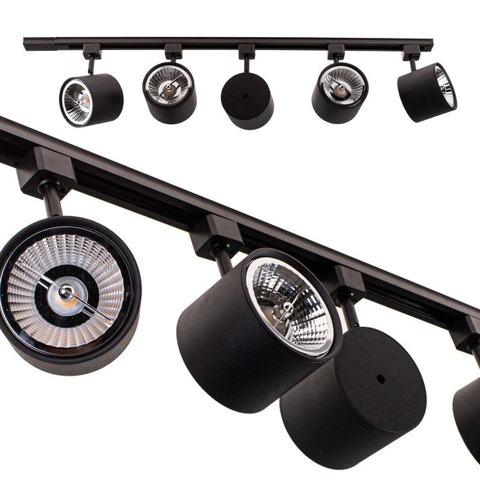 Trilho Eletrificado 1M + 5 Spot Preto + 5 LED Ar111 Branco Frio St2305 Preto