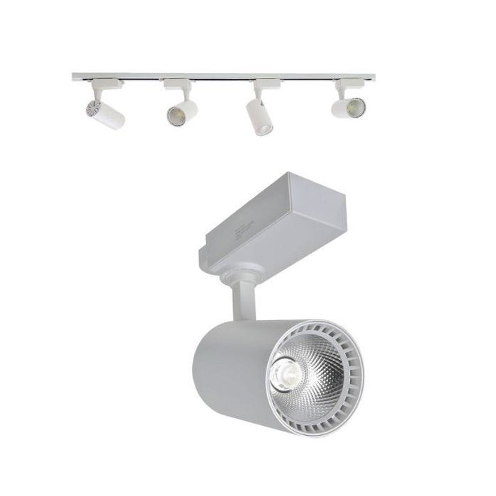 Trilho Eletrificado 2M + 6 Spot LED 10W 3000K Bivolt Branco