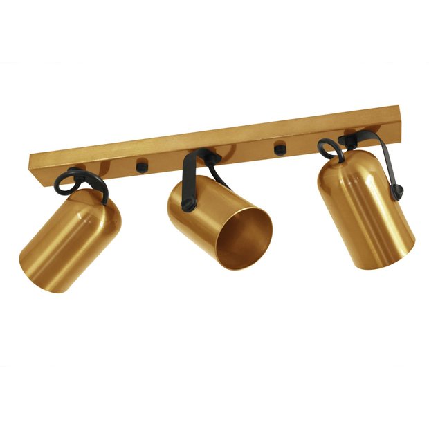 Trilho Luminária Teto 3 Spots Direcionáveis Alumínio Dourado Bege