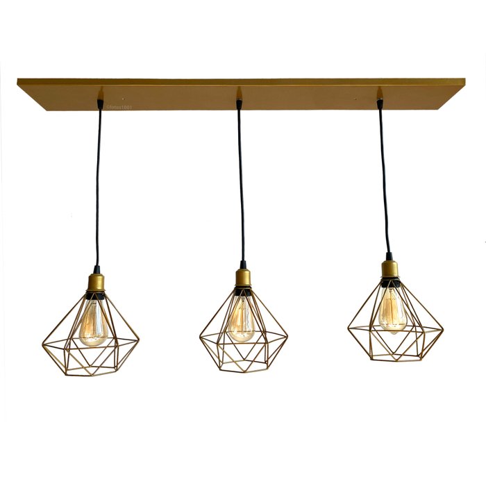 Trio Aramado Diamante Pequeno Poptem Canopla Múltipla Reta 97Cm Dourado Metal 19Cm Luminária Lustre Dourado