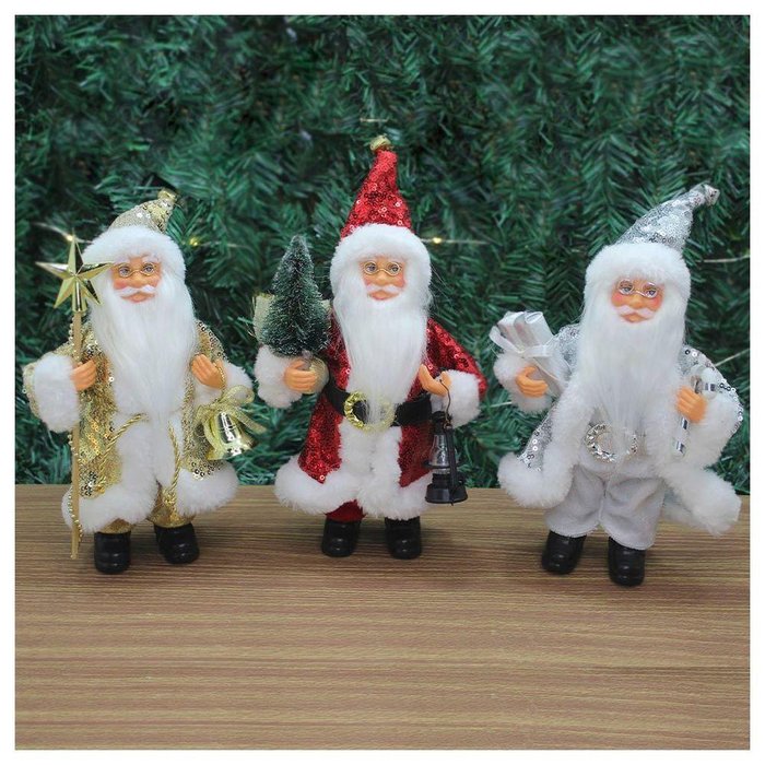 Trio Boneco Natal Papai Noel Com Brilho Em Tecido 22cm