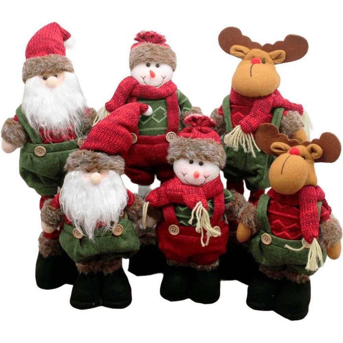 Material De Ambos: ;Poliéster;Conteúdo da Embalagem:1 Boneco ;Papai Noel Perna Ajustável De 28/45 cm;1 Boneco ;De Natal Perna Ajustável De 28/45 cm;1 Boneco ;Rena Com Pernas Ajustáveis De 28/45cm;