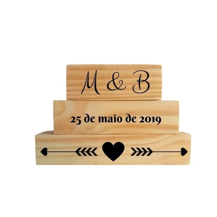 Trio - Data de namoro, casamento e iniciais do casal - em Madeira pinus