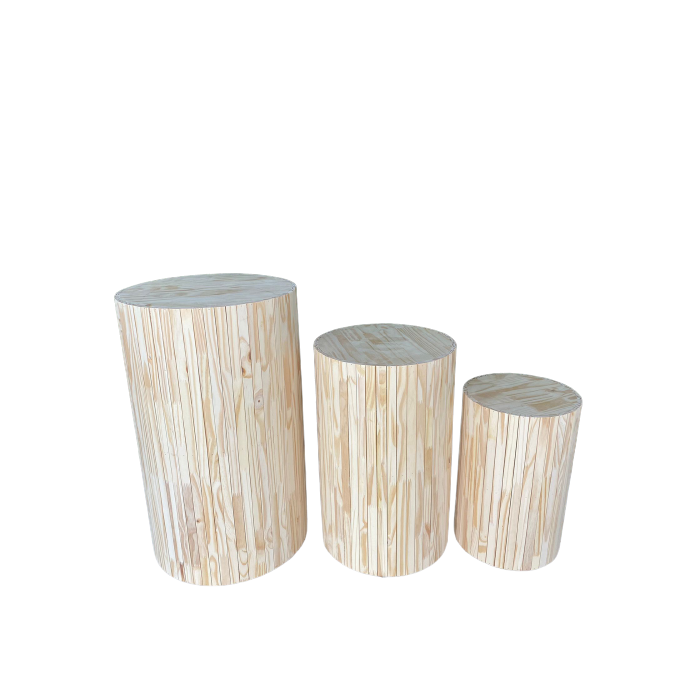 TRIO DE CILINDROS DE ENCAIXE RIPADOS EM PINUS