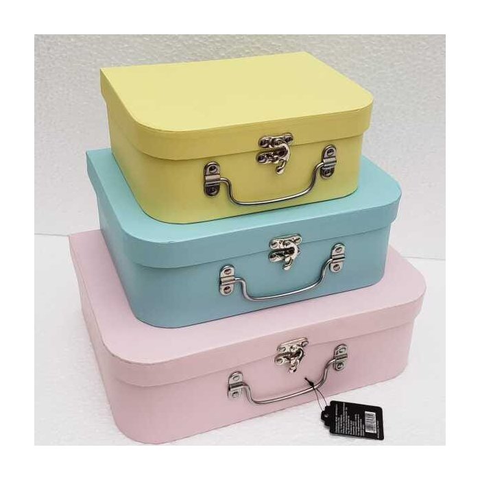 Não postaremos mais de 1 unidade no mesmo pedido, caso queira uma quantidade maior, peça aos nossos vendedores pelo campo de peguntas a quantidade desejada. Trio de Maletas de Papel Condy Color Ref: 84942 Material: Papel Cartonado Tamanhos. P: 20 cm x 16 cm x 8 cm M: 25 cm x 19 cm x 9 cm G: 30 cm x 22 cm x 9,5 cm Ref.84942