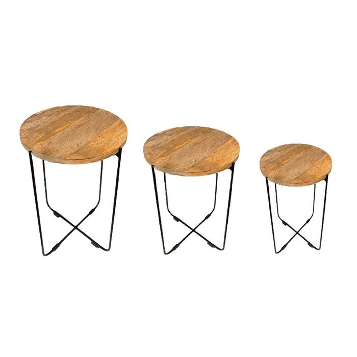 Trio de Mesas de Canto Thirsa Natural em Metal e Madeira