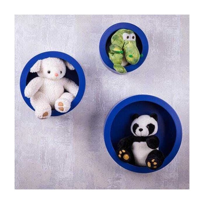 Trio de Nichos Redondos Azul Para Quarto Infantil 23cm - 30cm - 38cm