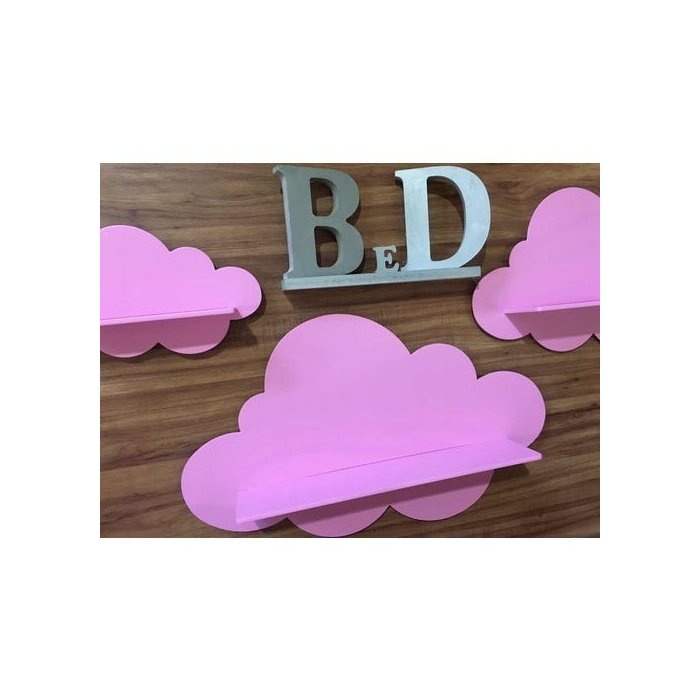 Prateleira de NuvemContém: 3 peçasMaterial: MDF Cor: Rosa sendo Pintura a base da águaMedidas: Prateleira G 60cm larg. x 37cm alt. Base: 10 cm prof x 45 cm largPrateleira M 45cm larg. x 28cm alt. Base: 9 cm prof x 30 largPrateleira P30cm larg. x 19cm alt. Base: 7 cm prof x 20 cm larg