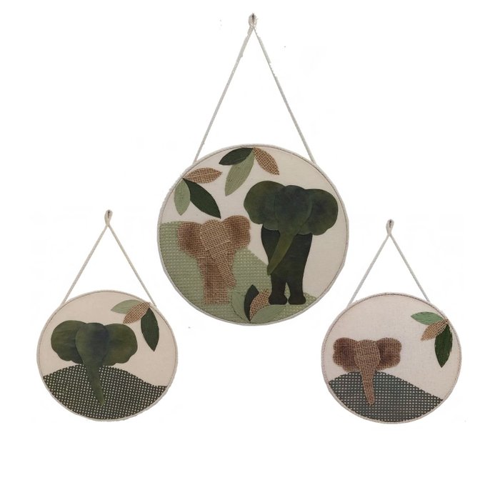 O charmoso trio de painéis da coleção Nadira e Rune vem para dar um toque a mais na decoração, com estrutura de aço galvanizado revestido em tecido de algodão com aplicação em tela, couro ecológico e fibra de algodão rústico.