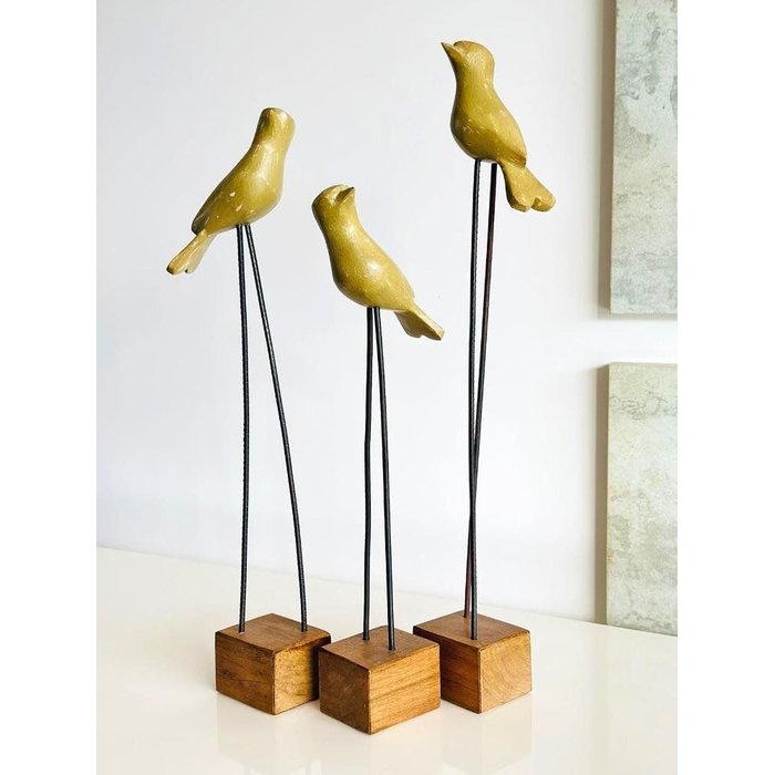 Trio de Pássaros em Madeira Escultura de Pássaro. Passarinho