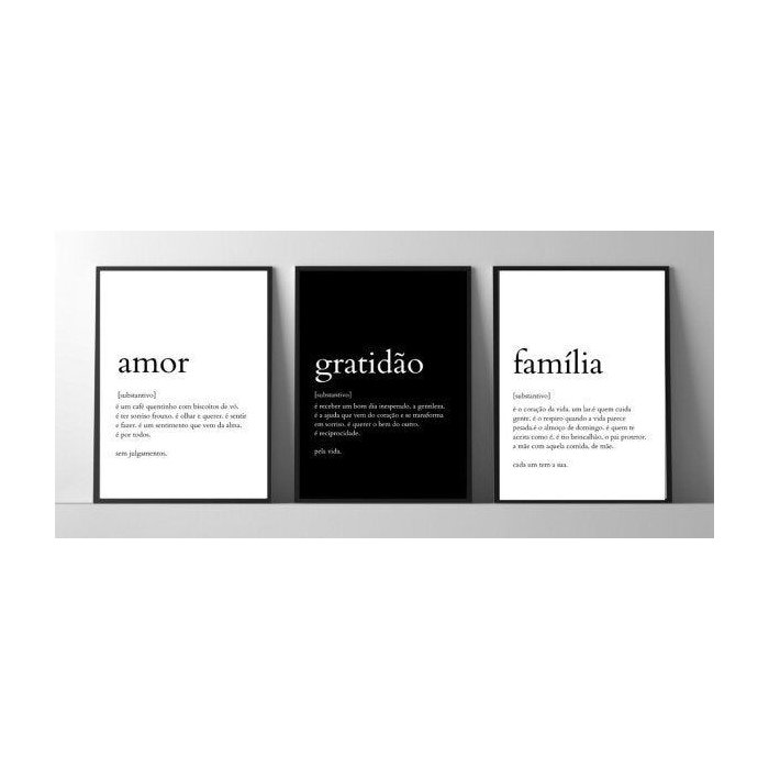 TRIO DE QUADROS - AMOR, GRATIDÃO E FAMILIA.