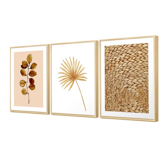 Trio de Quadros Minimalista Boho Decorativo 30x40cm Moldura Caixa -