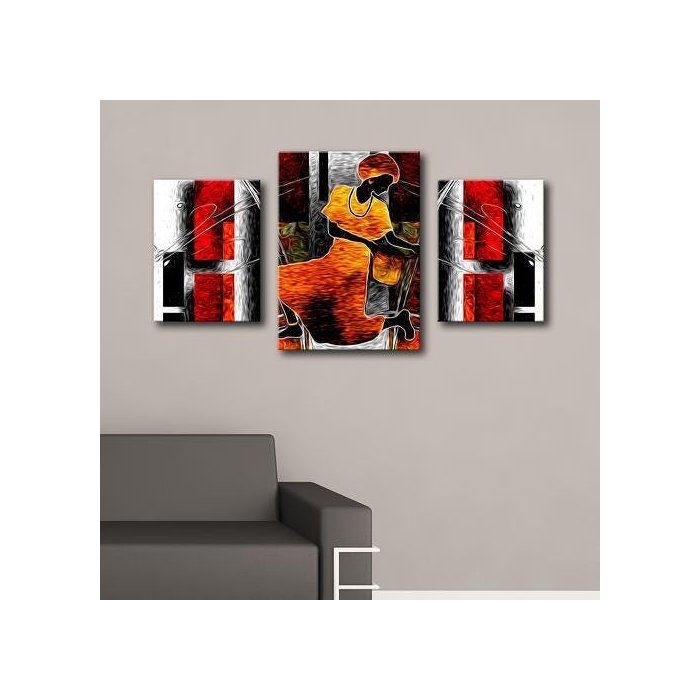 Trio em Tela Compacto Africana Abstrato Moderno 1 x 0,56 m