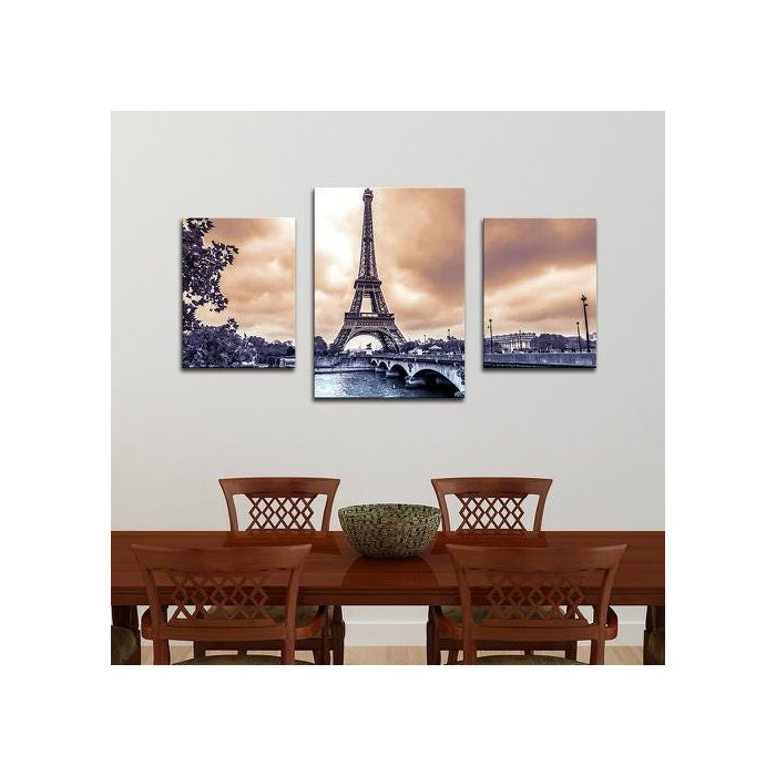 Trio em Tela Compacto Torre Eiffel e Rio Sena 1x0,56 m