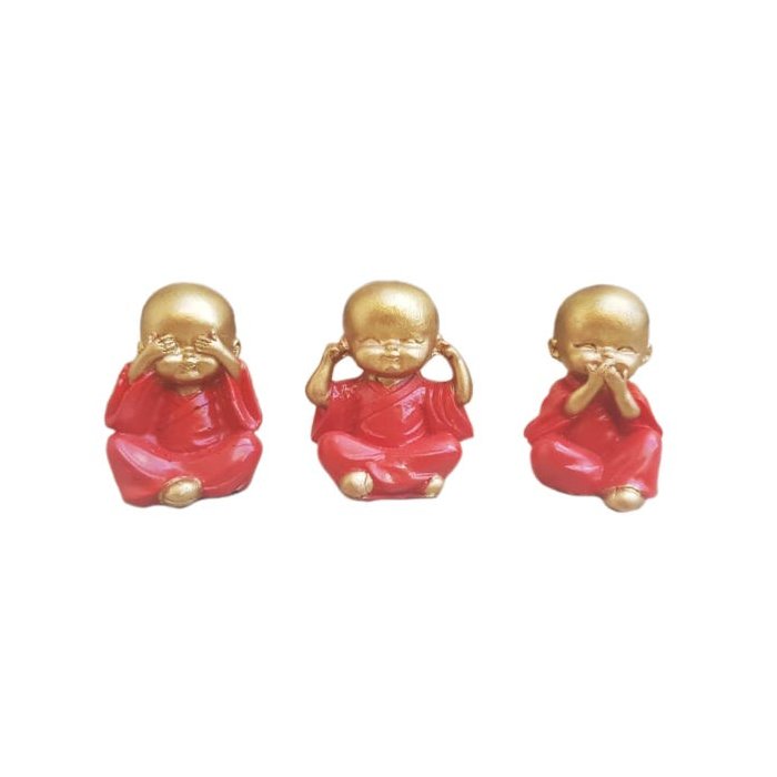 Conteúdo da embalagem : 1 trio de Budas Monges Vermelho e Dourado