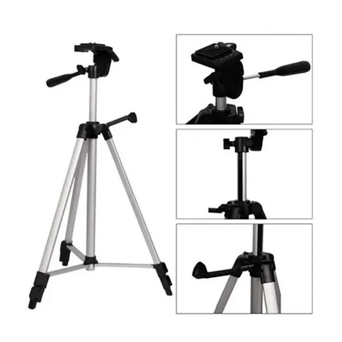 Tripé 1,37 com 3 Tamanhos para Maquina Fotografica Filmadora prata e preto