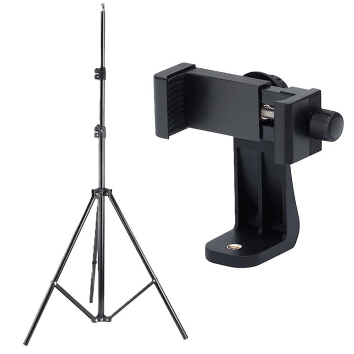 Eleve suas produções a um novo nível com nosso Tripé Ajustável de 2m + Suporte Giratório para Celular..