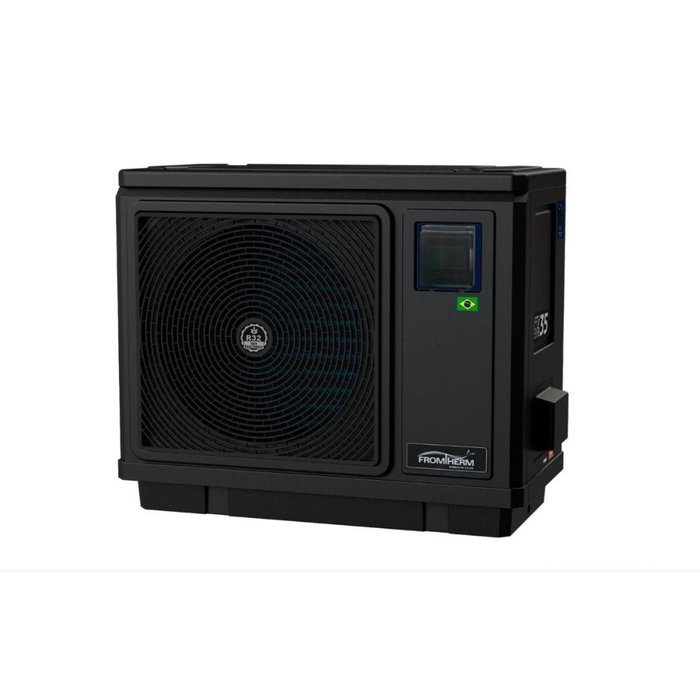 TROCADOR DE CALOR FTI 115 BR 220v MONO FULL INVERTER C/ WIFI - FROMTHERM Ideal para quem busca desempenho superior, durabilidade e praticidade no aquecimento da piscina!Com Wi-Fi integrado, gabinete e hélice em ABS, tecnologia Full Inverter, baixo nível de ruído, degelo a gás quente (com inversão de ciclo quente/frio), ventilador com eixo em aço inox e controle intuitivo com 3 modos de aquecimento e timers programáveis.O modelo FTi BR se destaca por:Condensador e evaporador desenvolvidos pela própria FromthermBase em ABS reforçadaDreno lateral para fácil instalaçãoBotão para acionar a bomba d'água de forma independenteFabricação 100% Nacional