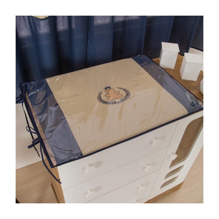 1 - Capa plástica transparente com fecho em lacinho ( Para facilitar a higienização e proteção do seu trocador)