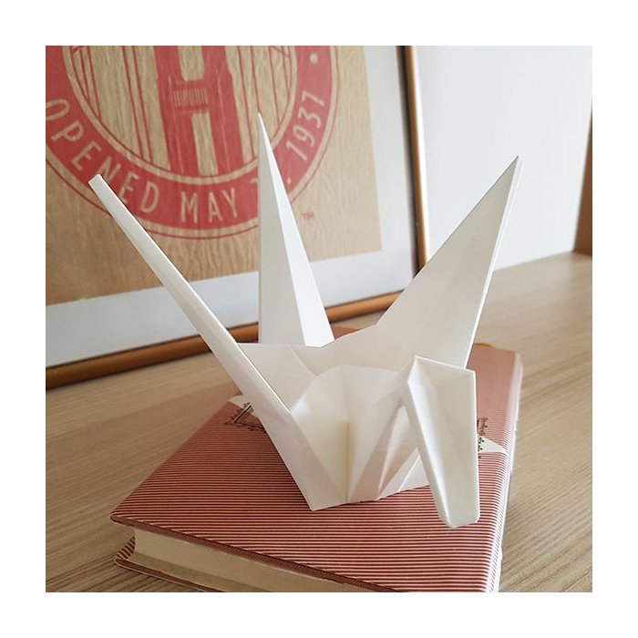 Tsuru decorativo inspirado em origamis japoneses. Possui detalhe em alto relevo representando as dobraduras do papel.
