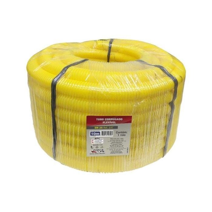 Tubo Corrugado Flexível 3/4 Dn 25 Rolo com 10m Amarelo Force Line