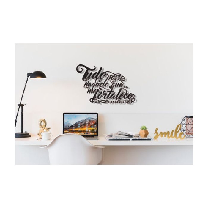 Tudo Posso Naquele Que Me Fortalece-Filipenses 4:13 40x26cm LETTERING em Madeira MDF Aplique de