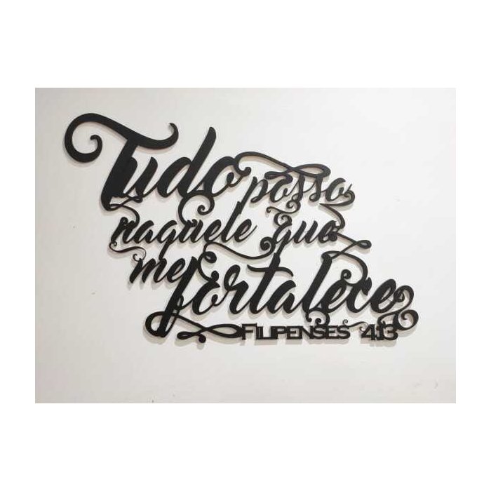 Tudo Posso Naquele Que Me Fortalece-Filipenses 4:13 60x38cm LETTERING em Madeira MDF Aplique de