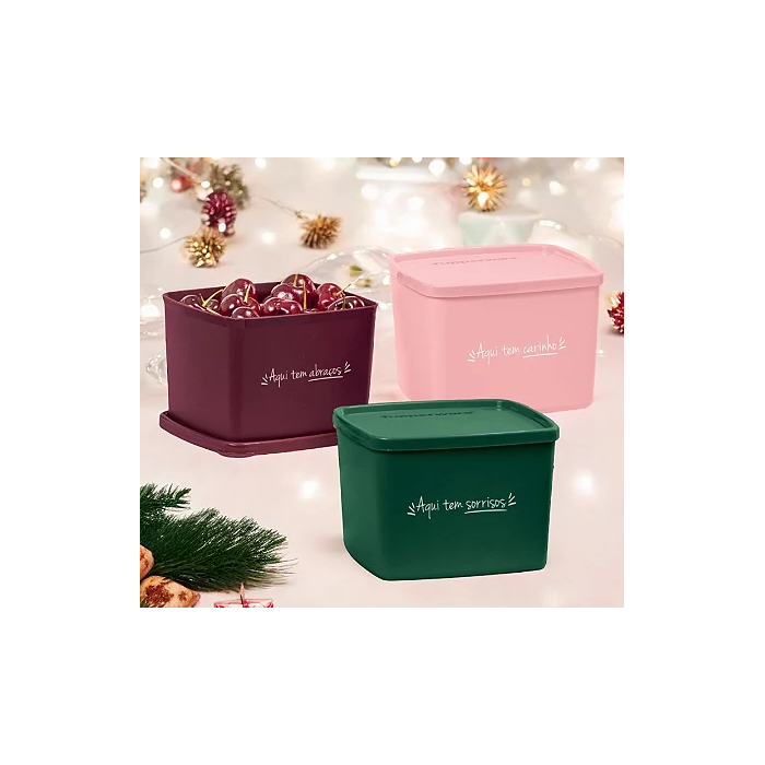 Tupperware Jeitoso 800ml Kit Aqui Tem Sorriso, Abraço e Carinho 3 Peças Tupperware Jeitoso 800ml Kit Rosa, Verde e Marsala
