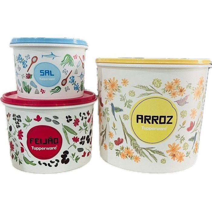 Tupperware Kit 3 Peças Porta Mantimentos Floral Porta Arroz Feijão e Sal
