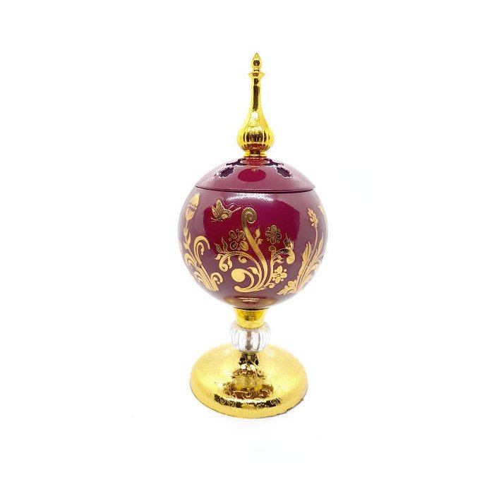 Turíbulo Incensário de Mesa em Metal Vermelho e Dourado