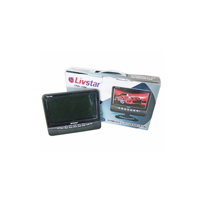 Entrada AV e fone de ouvido, vários idiomas do menu osd Suporta cartão sd/mmc e USB Suporta os formatos mpg/mp3/mp4 TV out Tv Analógica plano ntsc Auto Busca completa de radio FM Entrada de câmera de ré para Casa, Carro Itens inclusos Controle remoto Adaptador AC Carregador de carro 12v Manual de instrução Cabo AV Fone de ouvido e suporte para tela Tamanho da Tela: 7 Polegadas Peso Aproximado: 720 gramas Quantidade: 1 Televisão de LCD Portátil com Entradas USB / SD e Radio FM Cor: Preta Composição: Plástico e Componentes Eletrônicos