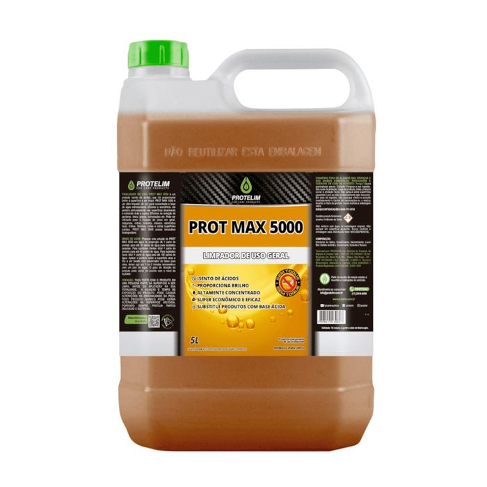 O PROT MAX 5000 é um produto isento de ácidos, que proporciona brilho à superfície a ser limpa. PROT MAX 5000 é um ultra limpador de uso geral concentrado, à base de água, extremamente eficiente e econômico. PROT MAX 5000 penetra profundamente nas superfícies, dissolvendo e extraindo toda a sujeira. Eficiente na remoção de gorduras, óleos, graxas, incrustações etc.