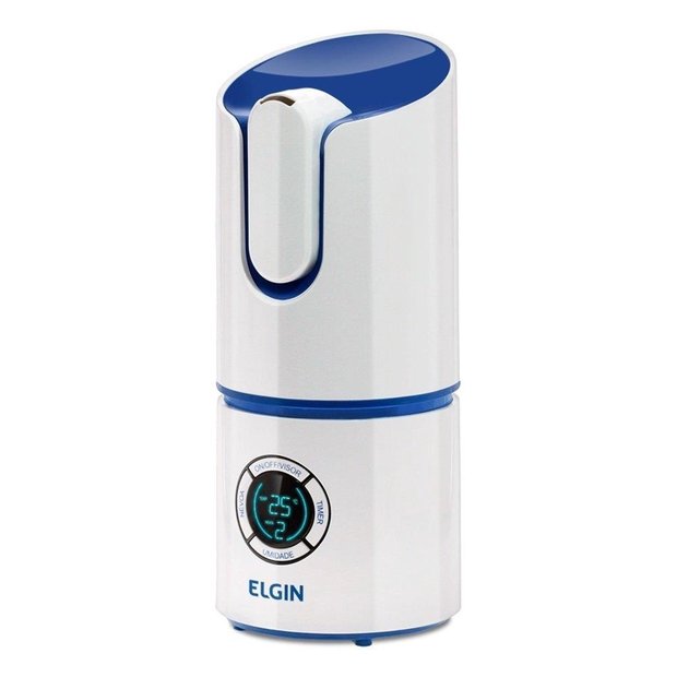 o UMIDIFICADOR DE AR ULTRASSÔNICO DIGITAL INTELIGENTE COM MEDIDOR DE TEMPERATURA E UMIDADE DO AR 2,5 LITROS BIVOLT ELGIN Com um design totalmente diferenciado e um tanque 2,5 litros de capacidade, o umidificador Elgin une bem-estar e sofisticação. Apresenta display