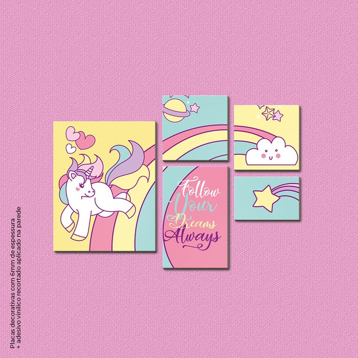 Unicórnio - Quadros ou Placas Modulares com 5 Peças