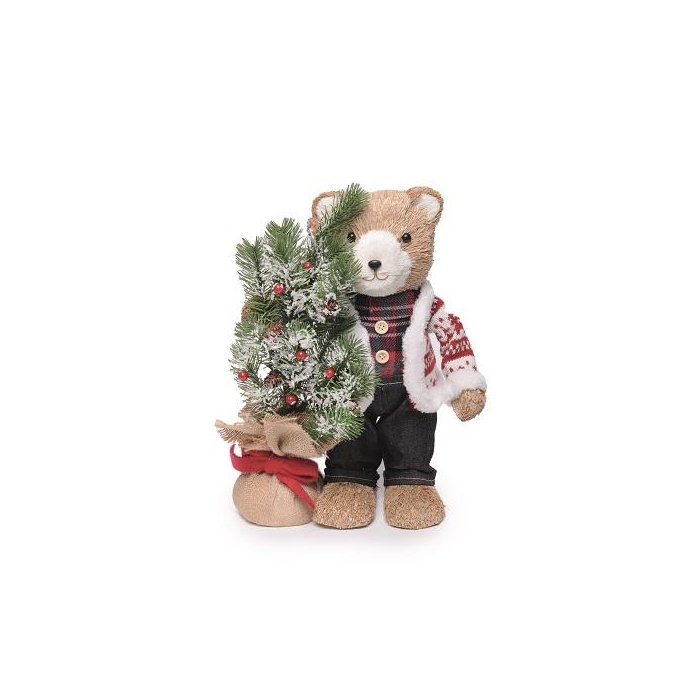Urso Decorativo em Palha Segurando Pinheiro