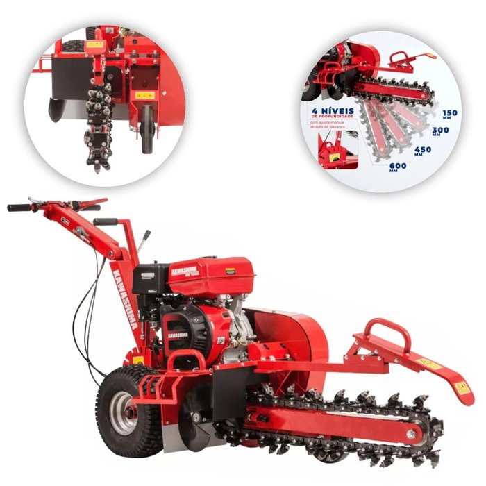 - Capacidade de escavação de 100 mm de largura por até 600 mm de profundidade