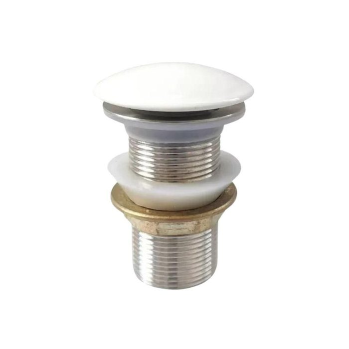 - 01 - Válvula Click 1.1/4 Inox C/ Tampa Ceramica Branca - Flvx Hidro