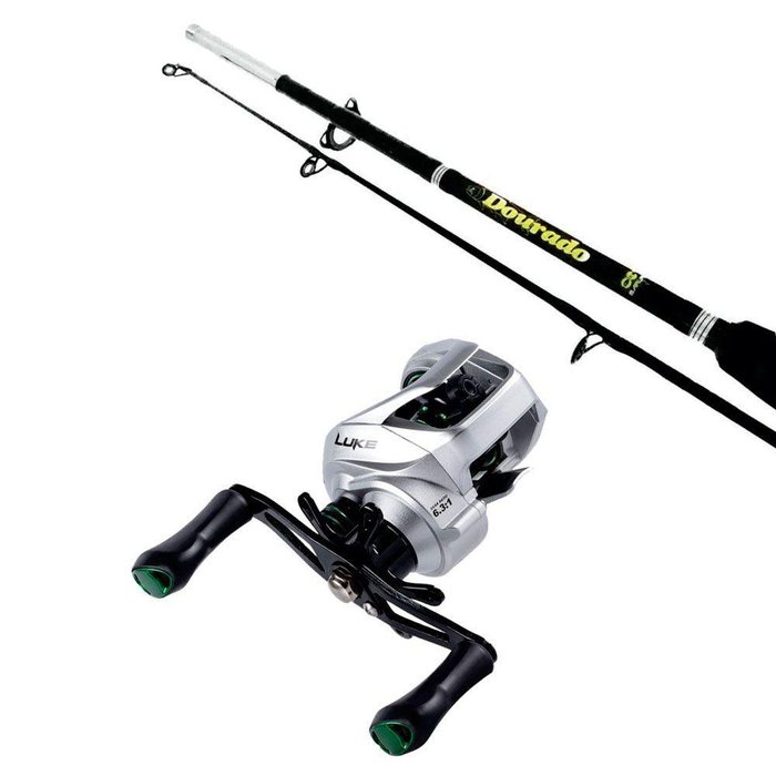 Vara Pesca Dourado 1,65m 30lbs + Carretilha Luke Prata Direita Prata