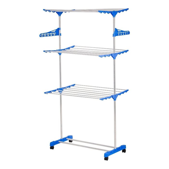 Varal 3 Andares Roupa Aço 4 Rodas Dobrável