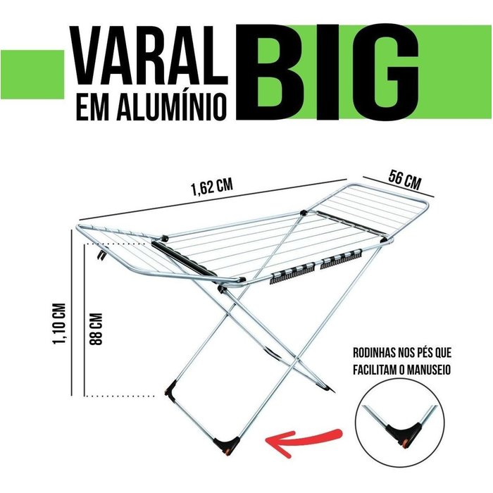 | Modelo | Varal Chão Abas Dobrável Grande Aluminio Super Resistente |