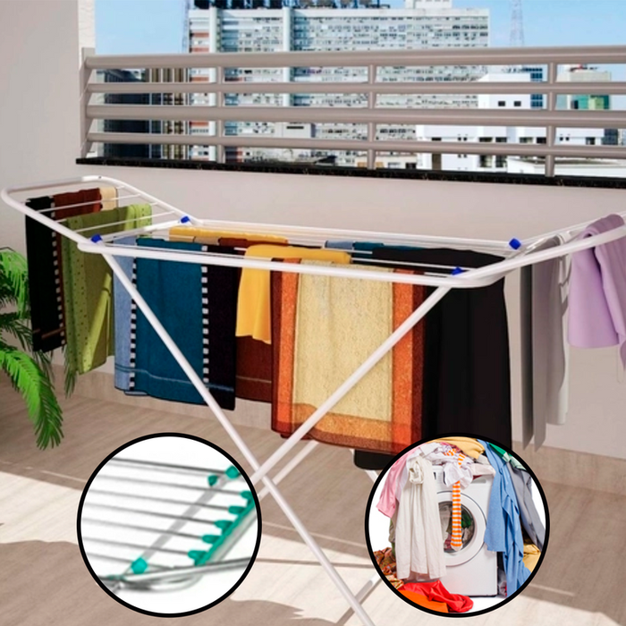 - Economia de Espaço: Graças ao seu design retrátil e compacto, você pode facilmente dobrá-lo e guardá-lo em qualquer canto da sua casa após o uso. Além disso, as abas adicionais proporcionam espaço extra para secar ainda mais roupas.