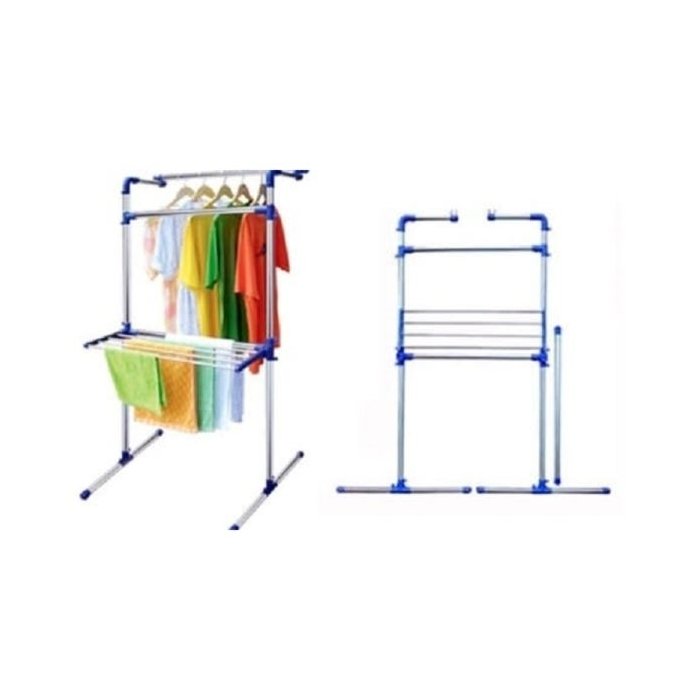 Este cabide de luxo em aço inoxidável multicamadas manterá suas roupas organizadas à medida que o verão se aproxima. Pode ser usado como um secador de roupas - bem como para economizar dinheiro em eletricidade. Este cabideiro multifuncional comporta uma grande carga de roupas com sua forte estrutura metálica de aço inoxidável e duas barras transversais na parte inferior para impedir que ela se balance.