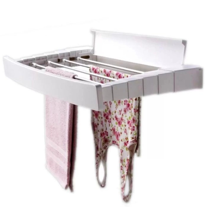 Varal Mágico De Parede Retrátil E Toalheiro Com 6 Varetas Ideal Para Apartamento - Maxeb