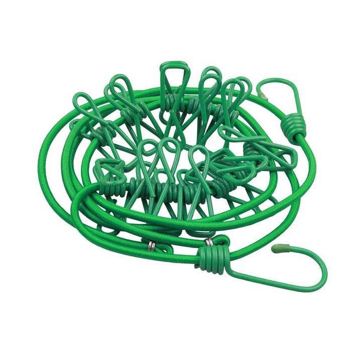 Varal Portátil Elástico 12 Prendedores Acampamento Viagem Verde