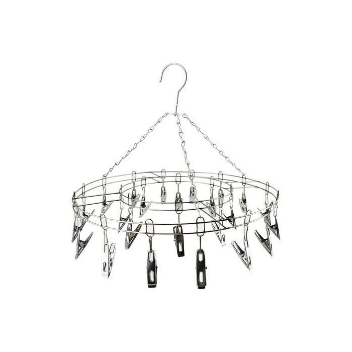 Varal para peças íntimas, que não pesam e nem requerem muito espaço. Você pendura em qualquer cantinho, em um gancho na parede ou até mesmo no varal e além de economizar espaço, economiza tempo porque não tem que ficar procurando o pregador, é só apertar e pendurar.