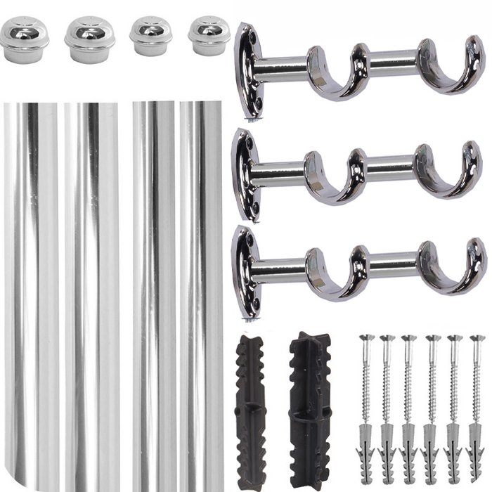 Varão para Cortina 4 m Duplo 28mm com 19mm Cromado suportes Resistente cromado